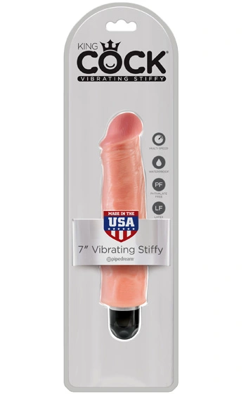 Beskrivning: När du letar efter en realistisk känsla hos en vibrerande dildo som alltid är redo för lite action, är King Cock’s vibrerande serie det perfekta valet. Denna livliga produkt är tillverkad i Amerika och erbjuder dig en kraftfull multispeed-vibrator som verkligen ger njutning i vardagen. King Cock är tillverkad av kroppssäkert gummi, som till känslan är slående likt en riktig penis. Som du ser på bilderna är vibratorn otroligt välarbetad och detaljrik. Den mjukare och penisformade delen går att ta av själva vibratorn om lusten istället faller på för en slät massagestav. För dig som gärna betalar några kronor extra för att få en så verklig känsla som möjligt. Mycket hög kvalitet.