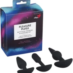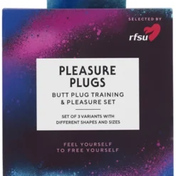 Beskrivning: Härligt paket från svenska märket RFSU, där du får tre analpluggar i olika storlekar. De tre pluggarna har extra bred bas samt olika form och storlek för en unik känsla som passar alla användare. Pleasure Plugs är gjorda av sammetslent och kroppssäkert silikon. Nedan kommer storlekarna för de tre olika modellerna: