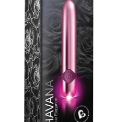 Beskrivning: En riktigt elegant massagestav med matt yta, som är bland det starkaste vi känt i vibratorväg. Denna stav kan tack vare sin mittemellan storlek användas både för penetration eller som klitorisvibrator. Det perfekt valet för nybörjaren som vill börja smått och enkelt, men samtidigt vill ha någonting av riktigt hög kvalitet. Havana är tillverkad av det engelska märket Rocks Off som är ett riktigt kvalitetsmärke där alla sexleksaker även är 100% vattentäta. Använd den vid onani på egen hand, eller varför inte ha den som klitorisvibrator under tiden du har sex med din partner.