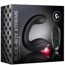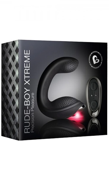 Beskrivning: Senaste nytt bland stimulerande prostata-produkter från Rocks Off. Denna nya modell av Rude Boy har inte bara en utan två kraftfulla vibratorer, en för prostatan och en för mellangården, som kan styras direkt på produkten eller via den medföljande trådlösa fjärrkontrollen. Förutom senaste nytt när det kommer till motorerna samt att den nu utrustats med fjärrkontroll så har även formen bearbetats för att stimulera dig maximalt.
