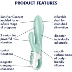 Beskrivning: Rabbitstav från välkända Satisfyer av mjukaste silikon där toppen via den elektriska motorn kan pumpas upp från 3,7 cm i diameter till 5,2 cm. Prova något nytt och ta dig eller din partner på en riktig upptäcksresa med senaste generationens rabbitstav.