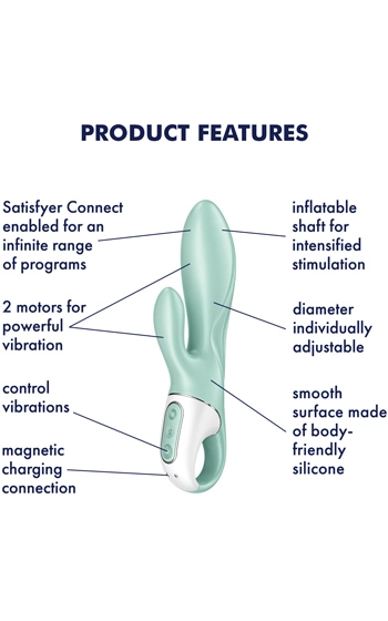 Bunny kan styras direkt på knappsatsen, men fungerar även med Satisfyer Connect -appen, där du har en rad olika funktioner och även kan låta din partner ta hand om styrningen åt dig. Förutom den fräcka pumpfunktionen finns en kraftfull vibrator i kaninen för klitoris, samt en i själva staven. Vibratorerna har 12 olika nivåer.