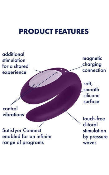 Beskrivning: Äntligen en appstyrd parvibrator som samtidigt är riktigt prisvärd! Rekommenderat utpris på Satisfyer Double Joy är av tillverkaren 799kr. Produkten används under sex eller på egen hand av henne, där ena delen är i vaginan medan den andra ligger utanpå och stimulerar klitoris. Används den under sex så ger den samtidiga vibrationer och en lite trängre känsla till mannens penis.
