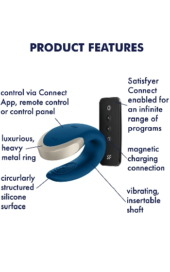 Till produkten medföljer en trådlös fjärrkontroll, om du inte vill använda Satisfyers högteknologiska app Satisfyer Connect i sänghalmen. Appen låter dig styra produkten på långt avstånd, samt göra dina egna vibrationsprogram. Satisfyer Connect är tillgänglig till iOS och Android.