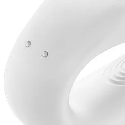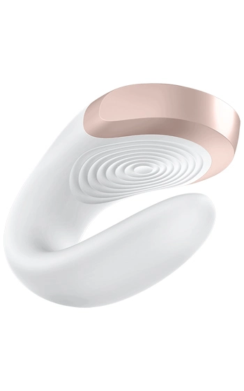 Satisfyer Double Love bärs av henne och ger med sina dubbla motorer (en i varje ände) vibrationer direkt mot G-punkten samt mot klitoris. Dessutom upplever mannen en trängre känsla samtidigt som han får vibrationer mot penis.