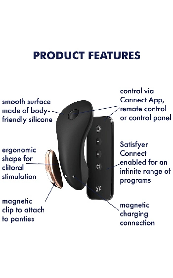 Krydda till vardagen lite extra, montera vibratorn med magnetfästet i din eller din partners favorittrosa. Reta och stimulera sedan hennes klitoris trådlöst antingen via den medföljande fjärrkontrollen eller via appen Satisfyer Connect.