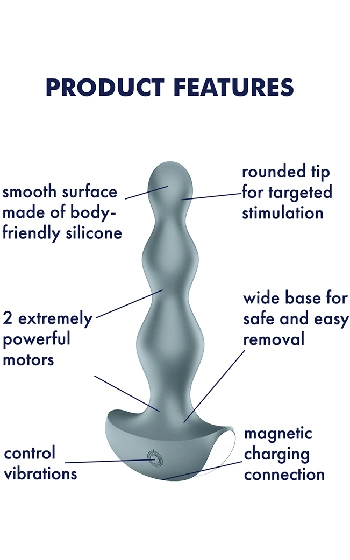 Satisfyer Lolli har extra bred botten, vilken fungerar som ett stopp vilket ofta önskas och efterfrågas bland just leksaker för rumpan. Lolli är relativt liten till storleken och kan användas både av nybörjaren och dig som tidigare experimenterat där bak. Dess tre upphöjningar utmed kroppen ger dig extra stimulans vid såväl in som utförande av leksaken. Slät och skön yta av kroppsvänligt silikon som glider extra bra, för maximal komfort.