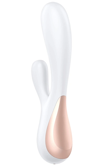 Beskrivning: Bli ett med den senaste tekniken – på dina villkor. Här är senaste nyheten bland rabbitstavar från Satisfyer. Mono Flex är en ergonomiskt formad, böjbar rabbitstav av silikon. Två kraftfulla motorer placerade i toppen samt i delen för klitoris, vibratorerna är oberoende av varandra och kan köras separat.
