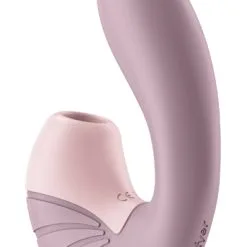 Beskrivning: Få en dubbelt så rolig upplevelse med denna produkt från världskända Satisfyer som har två funktioner i ett. Den längre av de två armarna penetrerar dig och har en direktstimulerande vibrator högst upp i toppen avsedd för G-punkten. Väl infört tar den kortare armen hand om din klitoris med den inbyggda lufttrycksvibratorn.