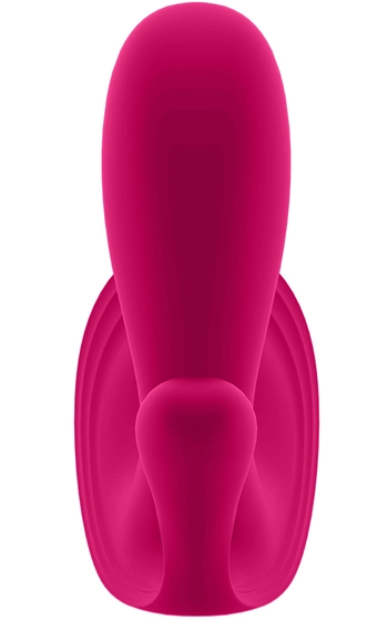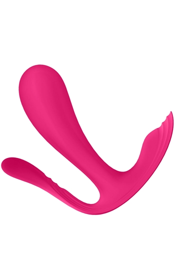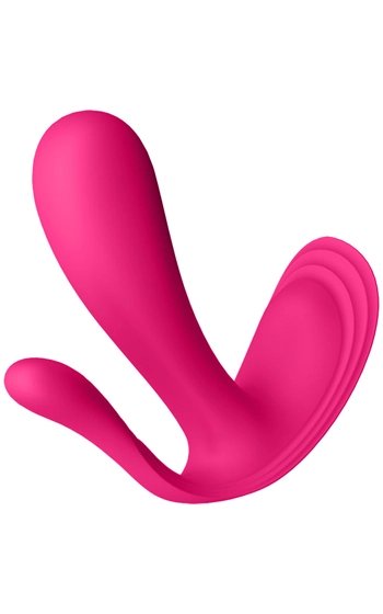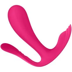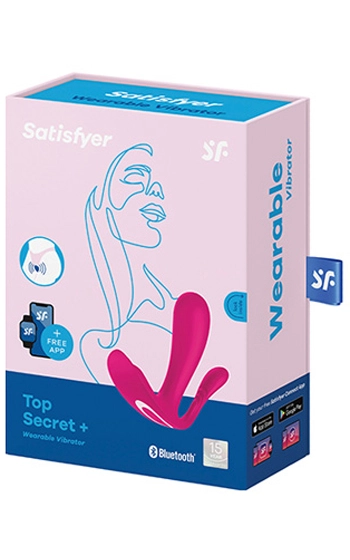 Beskrivning: En vibrator som i största hemlighet för omgivningen ger dig njutning både inuti och utanpå vaginan, under trosan. Top Secret har en platt och ergonomisk bas som ger den hög komfort när du bär den. Starta och bär produkten, styr den sedan direkt på knapparna eller helt trådlöst via den kostnadsfria appen Satisfyer Connect.