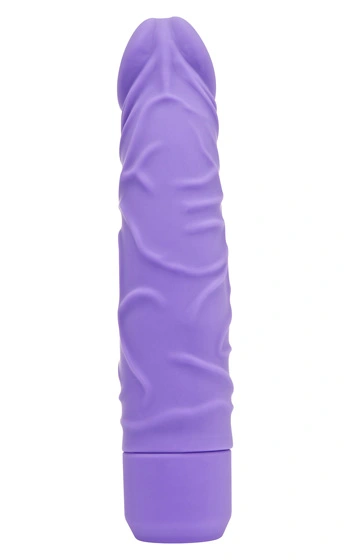 Beskrivning: Naturtrogen vibrator i snygg lila färg med härligt utpräglade ådror. 7 sköna funktioner, både pulserande och skönt vibrerande. Tillverkad av mjuk och böjbar silikon av absolut högsta kvalitet. Du kan låta din nya kompis följa med in i duschen då den även är vattentät. Medelstor och realistisk vibrerande dildo som ställer upp på lite skoj i alla väder.