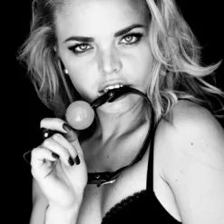 Beskrivning: Röd solid bitboll för tuffa lekar. Bollen har en diameter på 5 cm och det justerbara bandet är maximalt 66 cm långt. Mycket bra kvalitet från amerikanska Sportsheets.