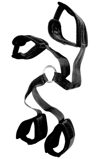 Beskrivning: Hand och fotfängsel som är sammanlänkade av en kraftig metallring. Fängslen är tillverkade i nylon och mycket fängselsäkra. Mycket bra kvalitet från amerikanska Sportsheets.