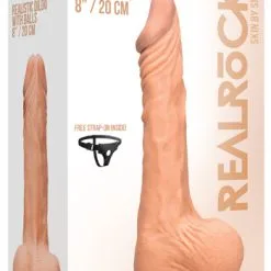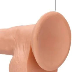 Beskrivning: Dildo med sammetsmjuk yta och realistisk form, med både vener, pung och ollon som ger mottagaren känslan av en riktig penis. Till dildon medföljer en Strap-On sele för omvända roller eller lekar mellan homosexuella. Dildon är inte ihålig, men kan dock självklart bäras av män ändå om din penis viks åt sidan. Livliga former och strukturer, tillverkad av mjuk TPE. Robust sugkopp i botten som även ger möjlighet till härliga rid över valfritt plant underlag. Sugkoppen är bredare än själva dildon och fungerar även som stopp vid användning ihop med den medföljande selen. Självklart är produkten, som alla leksaker vi säljer fri från ftalater.