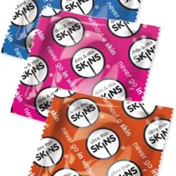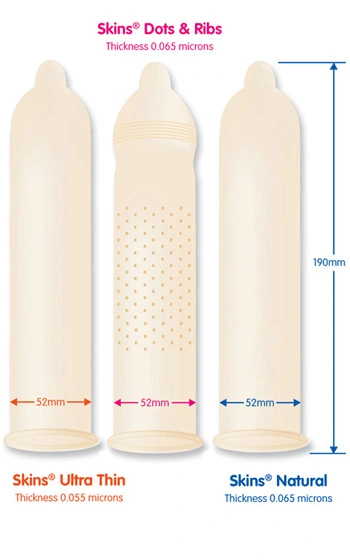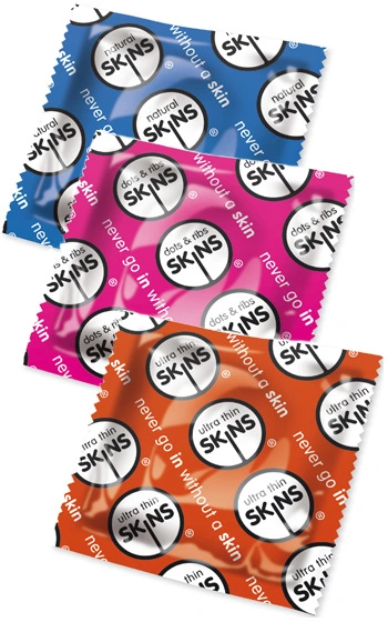 Beskrivning: Variation är livets krydda och med detta blandade pack du kan byta och förändras beroende på hur andan faller på. Prova tre av de mest populära kondomerna från märket Skins och du kommer garanterat hitta just din favorit! Förpackningen innehåller 4st Dots & Ribs, 4st Ultra Thin och 4st Natural.