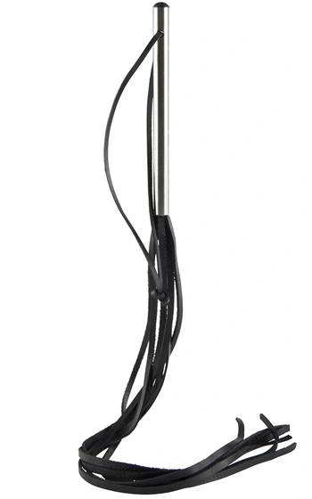 Beskrivning: Slimmad piska med handtag av metall och remmar i äkta läder. Handtaget på 16 cm ger ett fint grepp medans de 50 cm långa fransarna smiskar din partner varhelst han eller hon önskar. Mycket hög kvalitet och de två mest hållbara materialen en piska kan ha. Passar både för riktigt tuff BDSM som för nybörjarparet som vill prova på lite lättare bondage. Tillåt dig själv och din partner att upptäcka och utforska era snuskiga fantasier. Prisvärd piska som garanterat kommer vara dig hel och trogen i många år framöver.