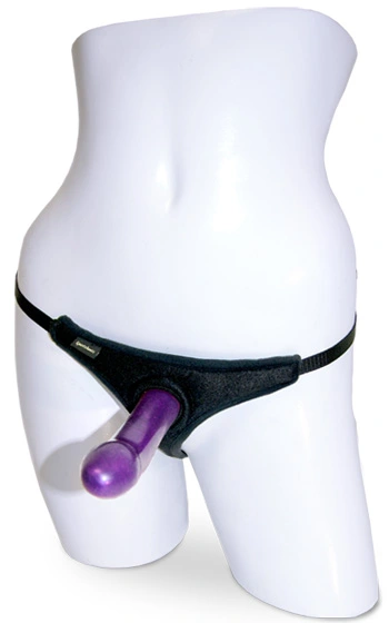 Beskrivning: Denna string-sele från Sportsheets av mycket hög kvalitet har 3-vägs justerbara remmar för att passa upp till 150 cm höfter, och är konstruerad för en 3,2 cm bred Skyn dildo. Setet levereras komplett med en 12 cm smal ”Sportsheets Please dildo”. Maskintvättbar i 30 grader.