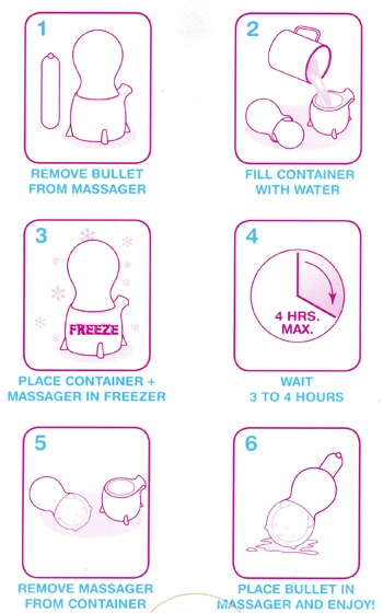 Beskrivning: Freezer Pleaser från ToyJoy är en underbar is-vibrator som ger dig en känsla som du inte upplevt tidigare. Fyll den medföljande koppen med vatten, saft eller frysbart glidmedel. Ställ den sedan i frysen i 4 timmar och tryck in vibratorn. En härlig isande känsla av vällust infinner sig snabbt. Bara fantasin sätter gränser var du kan använda denna unika leksak.