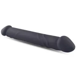 Beskrivning: Härlig dubbeldildo av syndigt svart silikon som känns fantastiskt skön i materialet. Lätt ådring och fullt böjbar för att kunna vikas till ett ”U”. Dildon är lite grövre på ena sidan, ena ollonet har en diameter på 3,2 cm medan det andra är 3,5 cm. Ett perfekt val för dig som kvinna, som vill ha en dildo i vart hål, eller vid lesbiska lekar. Självklart fri från ftalater, samt tillverkad av medicinskt silikon.