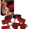 Beskrivning: Förvandla nästa lekstund i sänghalmen till en scen som tagen ur Fifty Shades of Grey. Mjukt hand och fotfängsel som kopplas samman för att begränsa din partners rörelser till max. Breda manschetter på 5 cm med hakar som monteras i den robusta metallringen. Bojorna spänns åt och justeras via kardborreband. Låshakarna är ledade och av tålig plast.