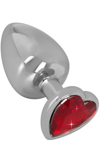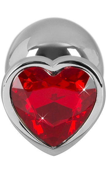 Beskrivning: Högblank analplugg med ett rött skimrande hjärta av sten i botten. Maximera och kombinera romantik med härlig och spännande njutning där bak. Denna analplugg är aningen större till storleken, dock inte alldeles för stor för dig som provat på mindre pluggar innan. Materialet som är av metall och hårt, samt ger en sval känsla som känns pirrande när den är införd. Stenen i botten glimmar och skimrar och utstrålar ren lyx.