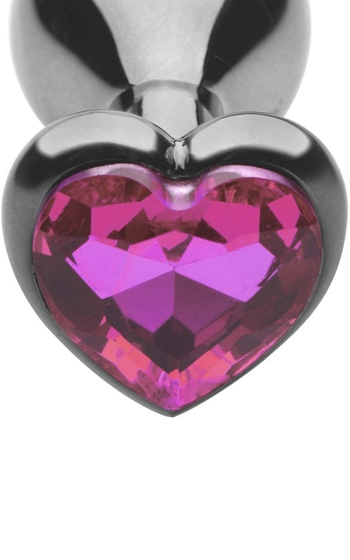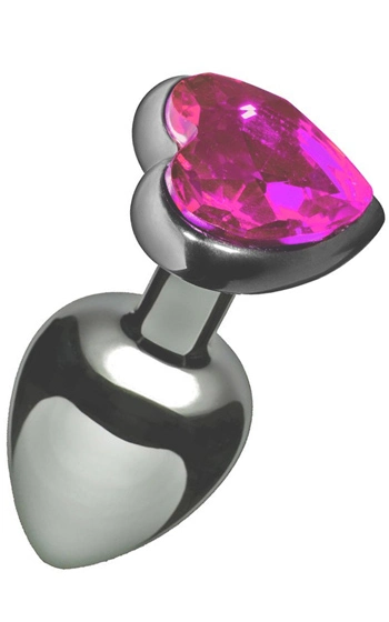 Beskrivning: Högblank analplugg med ett rosa skimrande hjärta av sten i botten. Maximera och kombinera romantik med härlig och spännande njutning där bak. Denna analplugg är aningen större till storleken, dock inte alldeles för stor för dig som provat på mindre pluggar innan. Materialet som är av metall och hårt, samt ger en sval känsla som känns pirrande när den är införd. Stenen i botten glimmar och skimrar och utstrålar ren lyx.