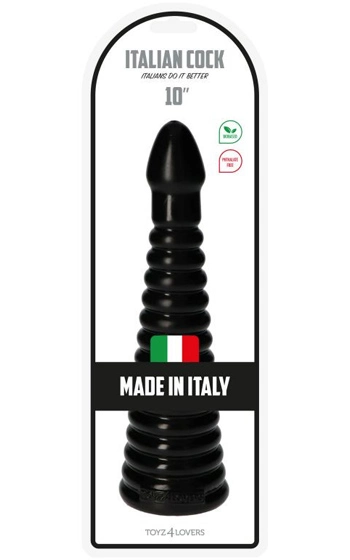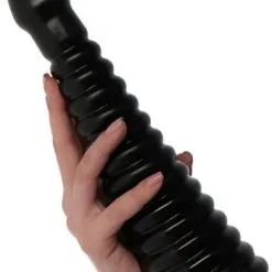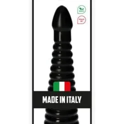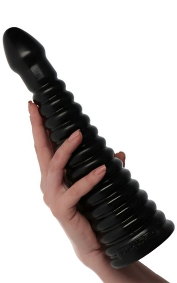 Beskrivning: En riktigt massiv plugg som är formad som en pyramid, tillverkad i Italien. Trots sin enorma storlek är den ändå inte omöjlig att bemästra om du är van vid töjande lekar. Produkten är 3,5 cm på det smalaste stället i toppen, och ökar ända upp till 8 cm i botten. Utmed hela kroppen hittar du stimulerande ringar som ger dig extra njutning ”på vägen” in. Pluggen är gjord av massivt gummi, och är något böjbar i materialet. Rundad topp som förenklar införandet.