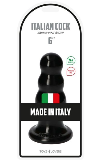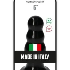 Analpluggen är 16 cm med sugkoppen inräknad, och penetrerar dig 13 cm. De tre ”ringarna” som är tjockare än själva basen mäter 4 cm, 4,7 cm, och 5,5 cm i diameter. Olmo är tillverkad i Italien, och är gjord av solid gummi. Ta dig an äventyret i en sann italiensk stil!