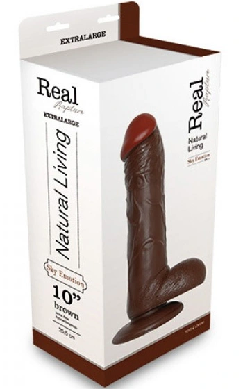 Beskrivning: Real Rapture Dark är en rejält stor dildo som med sin verklighetstrogna form, rejäla pung och tydliga ådror ger dig möjlighet att njuta till max, och förverkliga dina fantasier. Stadig sugpropp på undersidan som gör att den kan monteras på valfritt plant underlag. Självklart kan du även hålla ett stadigt tag om botten med handen och bara låta dina fantasier sätta gränser. Dildon är en riktig mastodont som med sin mörka färg och verklighetstrogna design passar dig med stora begär. Du kan själviskt njuta på egen hand eller använda den för en dubbelmacka tillsammans med en partner.