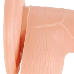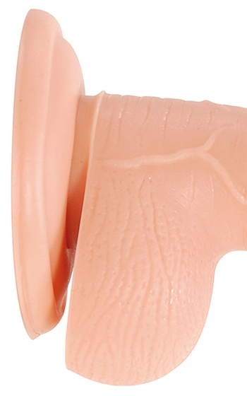 Beskrivning: Otroligt realistisk dildo som är helgjuten med pung och sugkopp i botten. Dildon har precis utseendet och känslan av en riktig penis, den är lätt ådrig och mycket detaljrik för ett realistiskt intryck. Smörj en klick glidmedel på toppen och låt den lagom stora staken halka in i dig. Den kraftiga sugkoppen i botten gör att du kan fästa dongen på t.ex golvet och gränsla dig över den, helt ”hands-free”. Produkten är allergivänlig, fri från ftalater och latex. Penetrerande längd 10 cm.