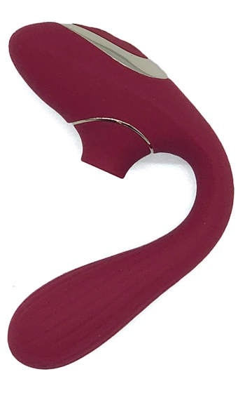 Beskrivning: Härlig och unik produkt som är en värdig utmanare till Satisfyer’s populära lufttrycksvibratorer. Här får du en produkt helt i sammetslen silikon, som penetrerar dig samtidigt som den stimulerar klitoris. Den penetrerande delen är fullt böjbar och inte fjädrande, den stannar alltså kvar i det läget du böjer den till. Gjord av medicinskt silikon som känns väldigt mjukt och lent mot huden, dessutom helt vattentät för lekar även i dusch eller bad.
