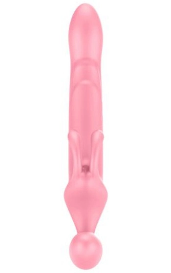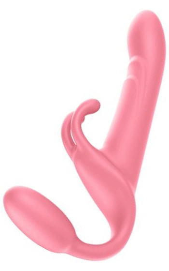 En vibrator i dildon, en i ägget samt en lätt juckande funktion hos den längre dildon som ökar den realistiska känslan ytterligare. Lätt att hålla ren med leksaksrengöring eller vanlig mild tvål och vatten. De två kaninöronen ger extra stimulans om mottagaren är en kvinnlig partner. Två knappar där den ena styr den längre dildons vibrationer och rörelse, medan den andra sköter vibrationerna i den äggformade delen.