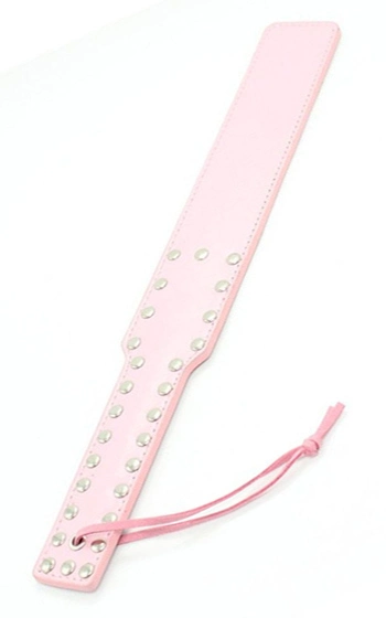 Beskrivning: Låt dig tuktas hårt eller försiktigt, av en läcker paddel gjord av rosa konstläder. Hårdare kärna i mitten som låter den flexa precis lagom för att ge skönt smisk till dina skinkor. Nitar av metall samt snöre i botten som gör att den kan hängas upp, eller träs kring handleden. Paddeln är utan snöret medräknad 25,5 cm lång. Smisk med en paddel ger högljudda och upphetsande snärtar, som egentligen låter mer än de gör ont.