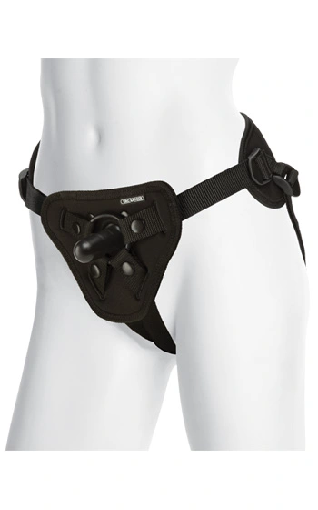 Beskrivning: Supreme Harness är en strapon-sele där tillverkaren fokuserat på riktigt hög kvalitet och en 100% komfort hos användaren som bär den. Skönt stöd med mjukt skumgummityg vid svanken och remmar undertill som möts under rumpan baktill. Justerbar för att sitta perfekt på dig som är upp till 175 cm runt höften. Tillverkad av syndigt svart och mjuk neopren. Pluggen framtill pluggas i valfritt tillbehör från Vac-U-Lock serien, o-ringarna i tre olika storlekar hjälper montaget att sitta utan risk för rubbning. Designen med öppen gren passar både henne och honom, är du man viker du undan penisen nertill och kan välja själv välja storlek på gummidongen som monteras framtill. Tvättbar för ett hygieniskt användande.
