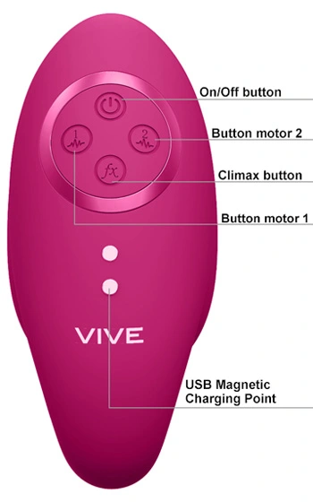 Beskrivning: Ny spännande produkt från lyxmärket Vive. Här får du som kvinna en unik produkt där den ena delen är inuti dig likt ett vibrerande ägg, medan den utanpåliggande delen stimulerar din klitoris med ett membran. Produkten är helgjuten utan skarvar och tillverkad av silikon. Två F1-motorer med avancerad teknologi som kan köras samtidigt eller var för sig.