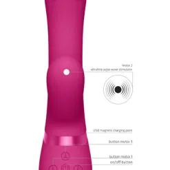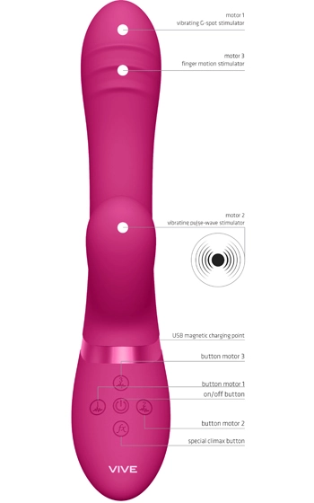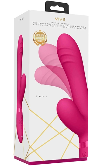 Beskrivning: Från det lyxiga märket Vive presenteras här en rabbitstav utöver det vanliga. För dig som är beredd att betala lite extra utan att lägga flera tusenlappar kan detta vara ett utmärkt val! Tani är kanske den mest innovativa och kraftfulla rabbitvibratorn på marknaden idag – tack vare sina tre 10-funktions New Generation F1-motorer och dess avancerade teknologier (alla tre motorer kan styras oberoende av varandra).