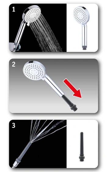 Beskrivning: Otroligt smart duschhandtag för den kontinuerliga användaren av analduschar. Förutom att alltid vara inkopplad på din duschslang så minimerar du även risken för att en besökare eller andra i hushållet skall upptäcka din rumpdusch. När du vill skölja rent analen skruvar du av själva handtaget från den grå duschdelen, när du är klar skruvas handtaget på och du kan duscha vidare. Duschhandtaget har tre olika lägen på strålarna som du kan se på extrabilderna. Hög kvalitet och väldigt smart för dig som sköljer rumpan ofta. Den grå delen som skall in i rumpan mäter 10 cm på längden och 1,5 cm i diameter.