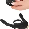 Beskrivning: Bärbar och stimulerande produkt för honom som gör onanistunden eller sexet så mycket skönare! Här får du kraftfulla vibrationer som kan styras antingen via fjärrkontrollen eller din smartphone. Ringen monteras kring roten och vibrerar härligt mot såväl pung som mellangården. Den kan även bäras under kläderna för diskret njutning exempelvis på nästa shoppingtur.