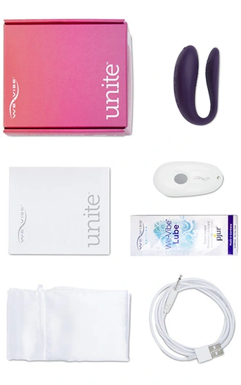 Beskrivning: Klassiska parvibratorn We-Vibe i en helt ny och mycket prisvärd modell. Unite är en nedbantad modell för dig som söker en parvibrator men struntar i såväl laddstation som appstyrning via mobiltelefon. Med i förpackningen kommer förutom själva parvibratorn även en förvaringspåse, laddkabel, fjärrkontroll och glidmedelsprov. Samma sköna och effektivt stimulerande form som tidigare modeller. We-Vibe är världens mest sålda parvibrator och bärs av henne under tiden du och din partner har sex. Stimulerar såväl klitoris som G-punkten och mannens penis.