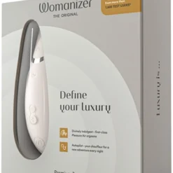 Womanizer Premium har en otroligt tyst motor med en maximal ljudvolym av låga 40dB. Slät och mjuk silikonyta samt 100% vattentäthet (IPX7 standard). Produkten laddas via med den medföljande USB-kabeln (magnetladdare). Laddtid 120 minuter ger en driftstid på 240 minuter i medelnivå. I förpackningen ingår förutom själva Womanizern även två stimuleringshuvuden med olika storlek på öppningen, en högkvalitativ påse av tyg samt bruksanvisning på 8 språk. Material: ABS, PU-beläggning, ftalatfri enligt EU-förordning REACH.