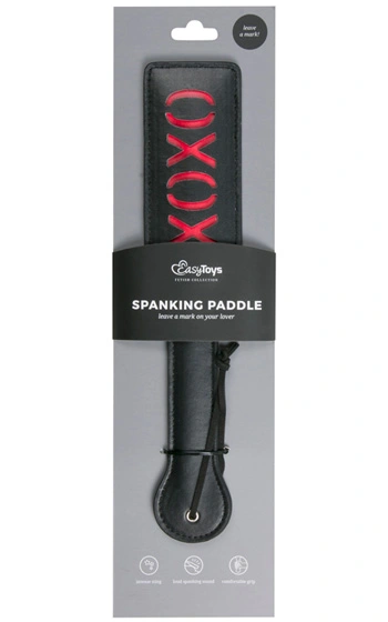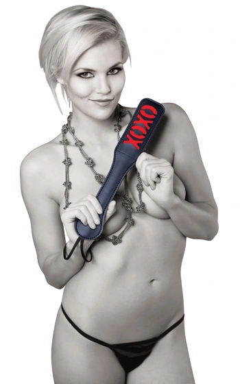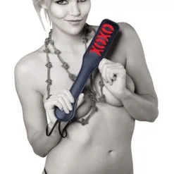 Beskrivning: Svart populär vinylpaddel med röda bokstäver som lämnar ett sexigt avtryck på valfri kroppsdel hos din partner. En paddeln har en större träffyta och brukar lämna mycket röd hud efter användning (som sedan försvinner av sig självt). När din partner har varit stygg, vad kan då passa bättre än att straffa honom eller henne med lite smisk? Denna läckra paddel har en röd inskrift av XOXO som kommer att finnas kvar på din partners hud efter en härlig session av smisk. Praktisk och effektiv form gör den lätt att hålla och använda.