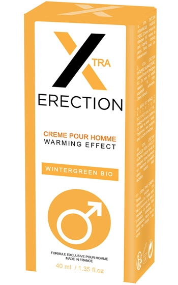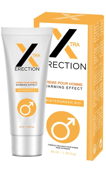 Beskrivning: Erektionskräm för honom som hjälper till att maximera din naturliga storlek och stånd. Krämen smörjs utanpå penis och består huvudsakligen av tuvvaktelbär (Gaultheria), som är en växt med naturligt, lokalt kärlvidgande egenskaper. Den samtidigt värmande effekten hos Xtra Erection gör att din känsel ökar, vilket får dig att maximera styrkan och känseln i penis.