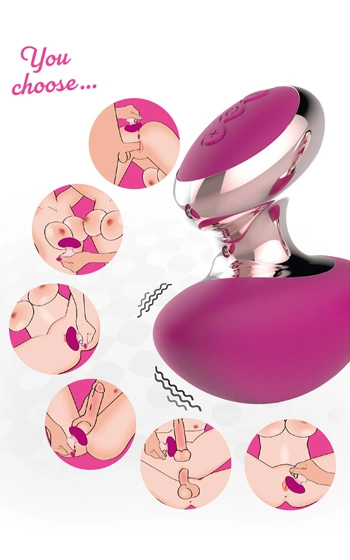 Perfekt formad för att hållas stadigt i handen, samtidigt som den smidigt rör sig efter kroppens former, som ger dig möjligheten till att massera din partner var som helst på kroppen. Produkten startas genom att den mittersta knappen hålls intryckt i tre sekunder. En blå lampa lyser när produkten är igång, växla sedan vibrationsstyrka med knapparna plus och minus. Knapparna är diskreta och nedsänkta för att du inte ska råka trycka på någon knapp av misstag när du använder den. Couple Choice Massager’s vibrator är tystgående och ger djupgående vibrationer, från mild massage till full effekt.