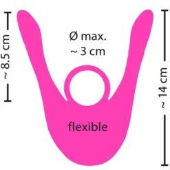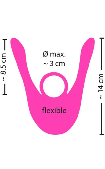 Beskrivning: Underbart mjuk och skön parvibrator som bärs kring mannens penisrot och ger härlig stimulans till både henne och honom under sex. Tio olika program av vibrationer som kan styras trådlöst via den medföljande fjärrkontrollen. Tre motorer, en i vardera flexibel silikon-arm samt en i mitten.