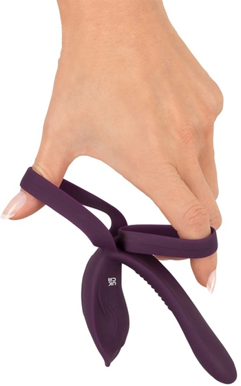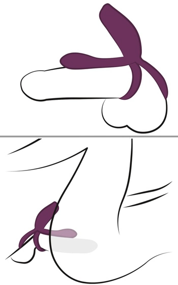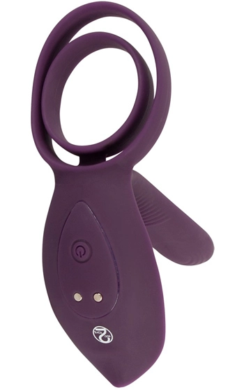 Beskrivning: Parvibrator som stimulerar hennes klitoris samt G-punkt, samtidigt som den ger mannen lite extra tjocklek och en åtstramande ring för penis och en för pungen. Denna produkt har dubbla motorer, en längst fram i toppen av den penetrerande delen (för G-punkten), samt en i en uppstickande delen för klitoris.