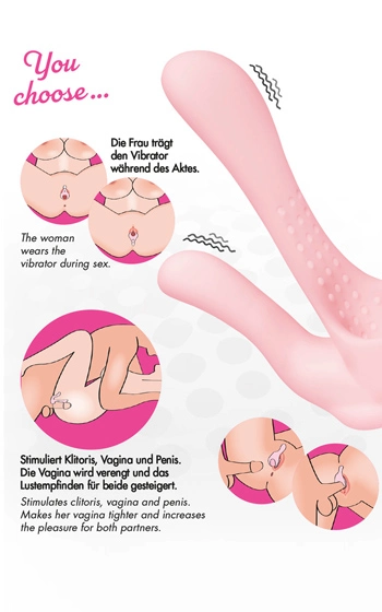 Beskrivning: Härlig och helt unik parvibrator som monteras kring mannens penis. Med Choice får du lite extra storlek och ger din partner både vibrationer inuti och utanpå vaginan. Produkten kan även användas av homosexuella par, och stimulerar då perineum istället för klitoris. Båda partner får extra stimulans tack vare den strukturerade ytan som består av små upphöjda prickar, kombinerat med 10 kraftfulla vibrationsprogram. Produkten är uppladdningsbar via medföljande USB-kabel.