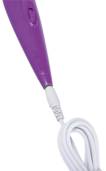 Flexibel hals och ett något mindre massagehuvud som låter dig stimulera från sidan eller toppen mot exempelvis klitoris. Kan användas vid onani, sex eller under förspel. Snygg lila och vit färg på kroppen av plast, massagehuvudet är helt vitt.