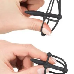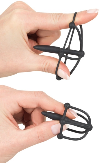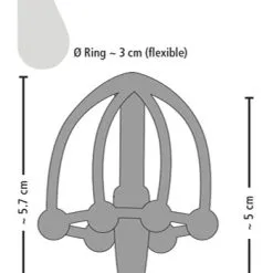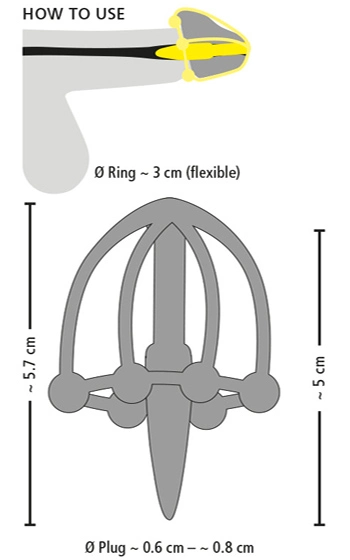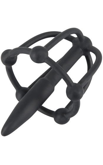 Beskrivning: Härlig penisbur som monteras kring mannens ollon, med en stoppande plugg för urinröret. Innerdiametern på själva ringen för ollonet är 3 cm, och den har även fem stimulerande kulor runtom ringen. Upplev den underbara känslan av orgasm samtidigt som utlösningen hålls tillbaka. Denna produkt rekommenderas inte för nybörjaren.
