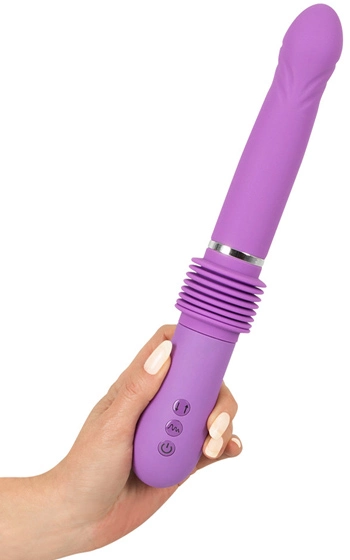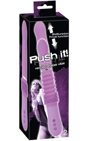 Beskrivning: Vibrerande dildo av skönaste silikon i en riktigt snygg, lila färg. Push It rör sig in och ur dig med en slaglängd på hela 6,5 cm, vilket är den längsta penetrationsdjupet vi har på automatiska dildos. Modellen är uppladdningsbar och känns verkligen kvalitativ. Använd den i vilken kroppsöppning du vill, fungerar lika bra i mus som rumpa. Belysning i knapparna för att lätt kunna manövreras även i mörker. Själva dildon är av slät och mjuk silikon.