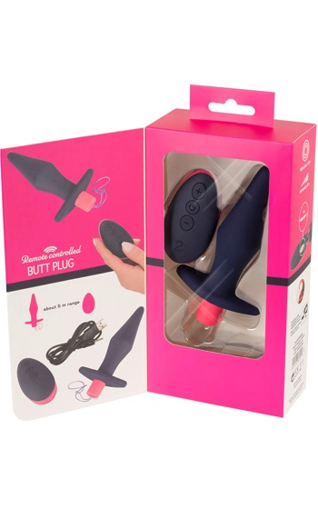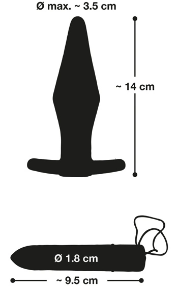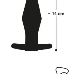 Beskrivning: Utforska dina förbjudna fantasier med den här spännande analpluggen av mjukt silikon. Förutom en perfekt nybörjarleksak för rumpan får du här samtidigt en inbyggd vibrator som styrs via medföljande fjärrkontroll. Avsmalnande och med rundad topp som gör den lätt att föra in. Penetrerar dig maximalt 10 cm och har dessutom ett stopp på båda sidor nedtill av pluggen.
